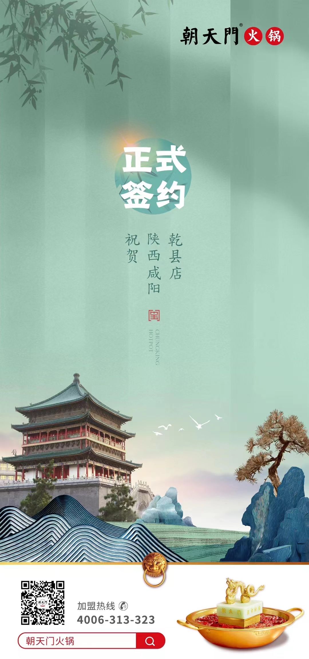 喜訊:朝天門(mén)火鍋簽約入駐陜西咸陽(yáng)乾縣!