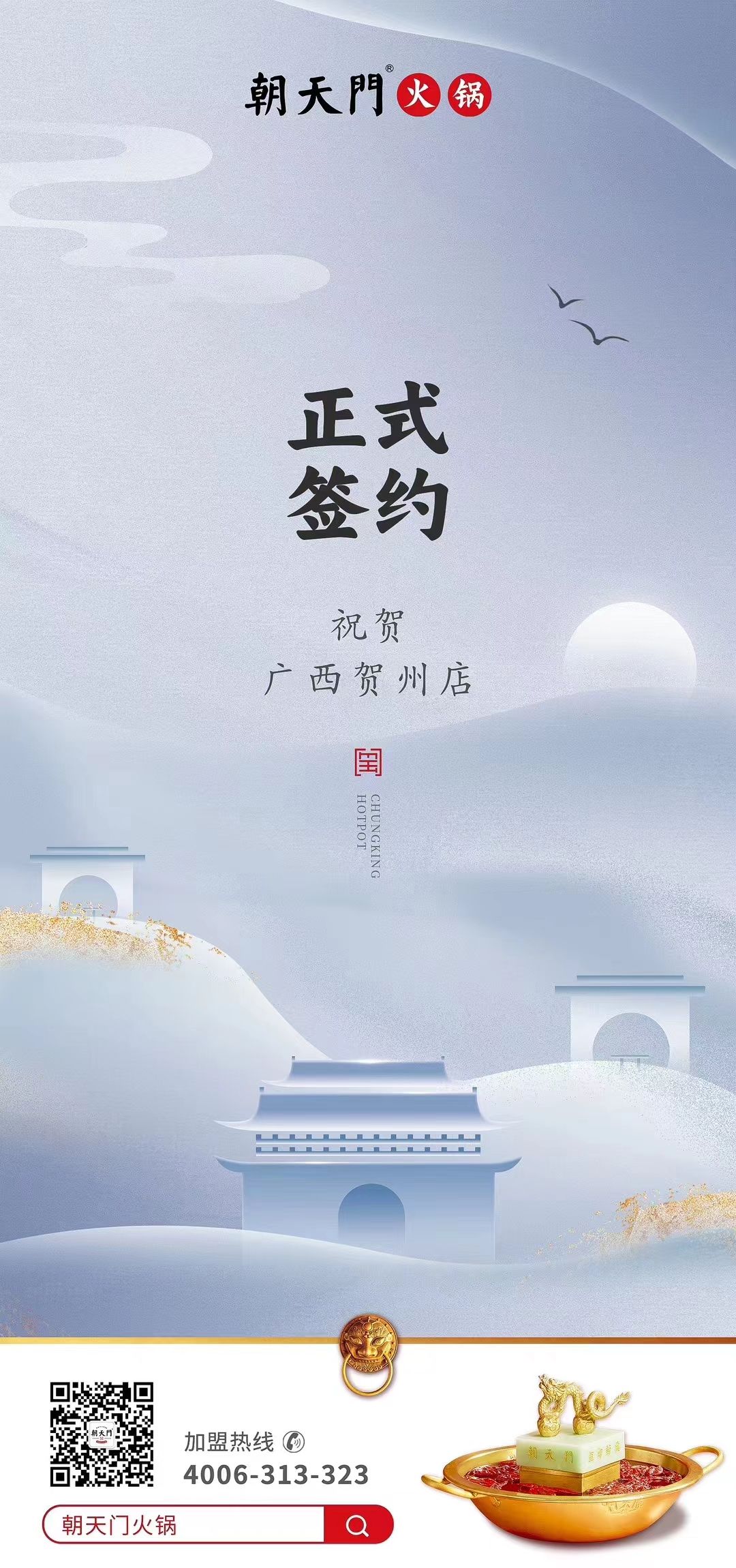 王總用敏銳的商業(yè)嗅覺,獨具慧眼相中朝天門品牌,朝天門無論從品牌名氣上,還是供應(yīng)鏈上,還是運營上,都將全力以赴,給予王總最強有力的支持,朝天門火鍋必將在廣西賀州當(dāng)?shù)厥袌觯破鹁薮罄嘶?,最后,預(yù)祝廣西賀州店,開業(yè)大吉,生意興??!